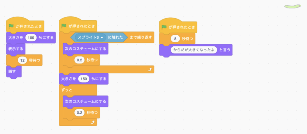 - 背景が動いていないので、あおむしが歩いている感じがしない。