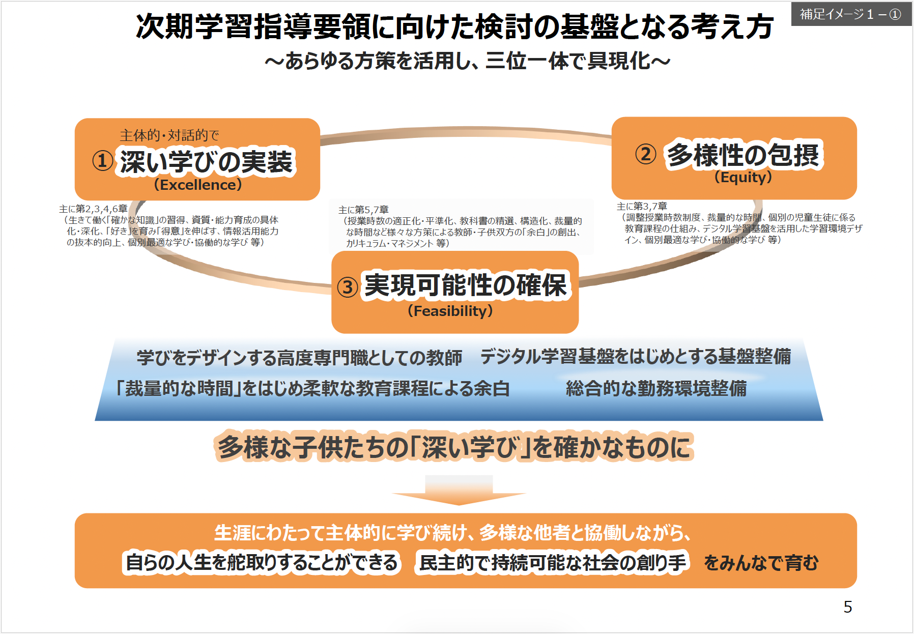 ここでは,次期学習指導要領に向けた検討の基盤となる考え方についてまとめます。